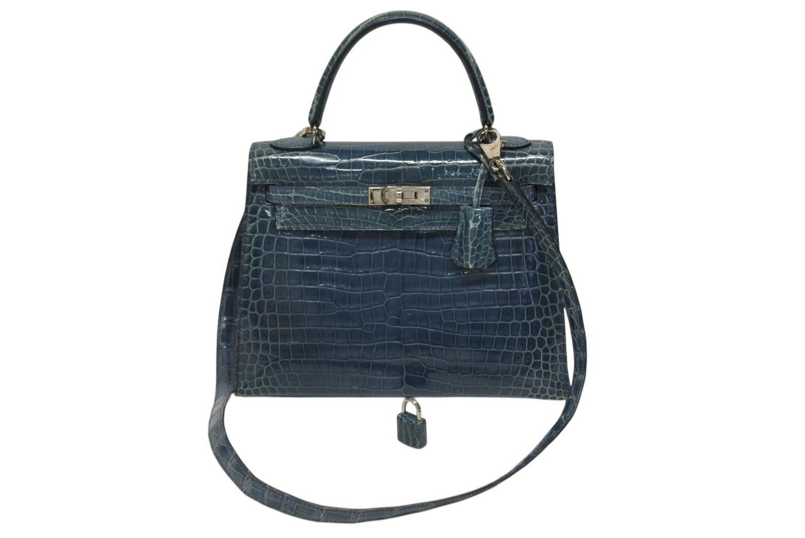 HERMES エルメス ケリー25 ◽︎B刻印 アリゲーター ポロサス ブルー系 バッグ 外縫 中古・・・