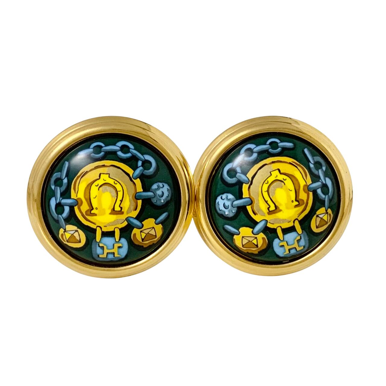HERMES エルメス イヤリング エマイユ 七宝焼き ホースシュー 馬蹄 H ロゴ チェーン ゴー・・・
