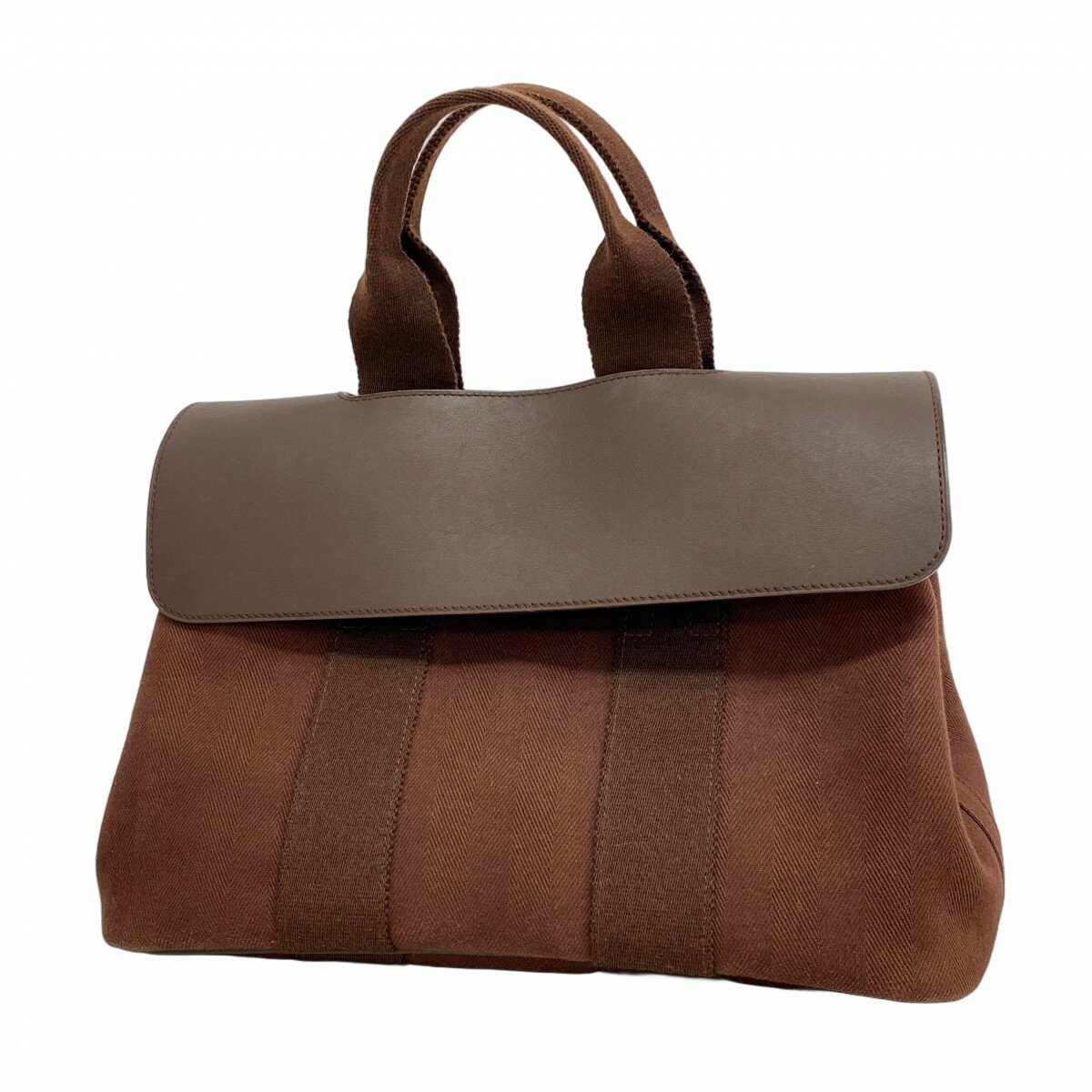 【5oc2119】エルメス トートバッグ ヴァルパライソPM トワルシェブロン ブラウン シルバー金・・・