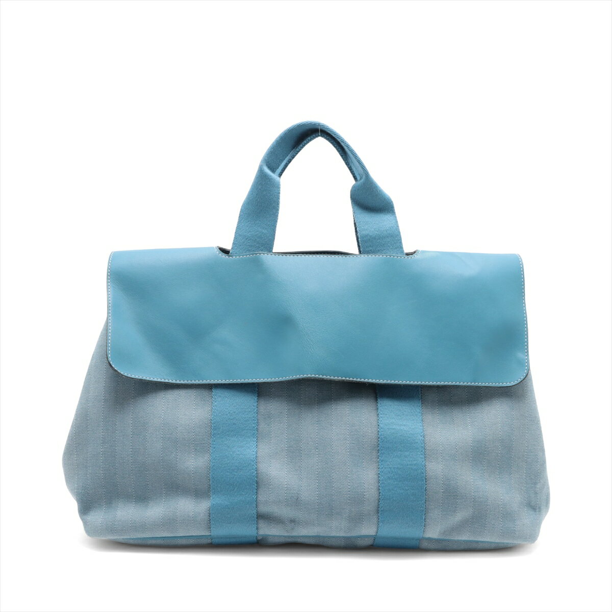 【中古】エルメス ヴァルパライソGM トワルシェブロンxレザー ブルージーン シルバー金具