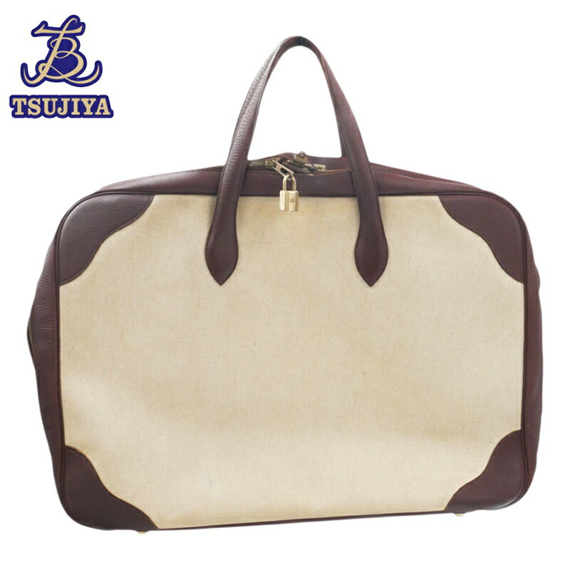 【中古B】HERMES エルメス ヴィクトリア50 ハンドバッグ ベージュ×ブラウン トワルアッシュ・・・