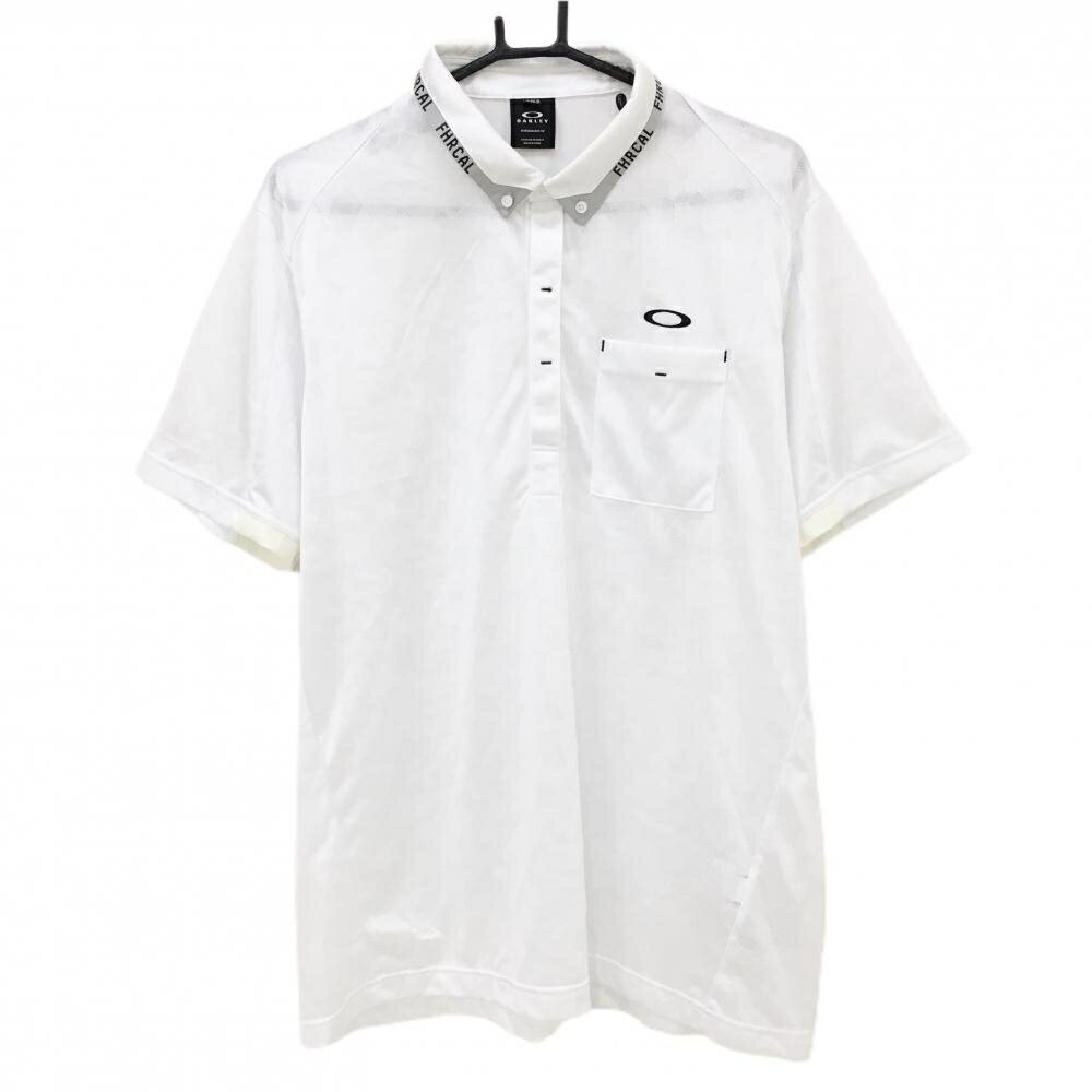 【美品】オークリー 半袖ポロシャツ 白 総柄地模様 ボタンダウン メンズ 2XL ゴルフウェア 20・・・