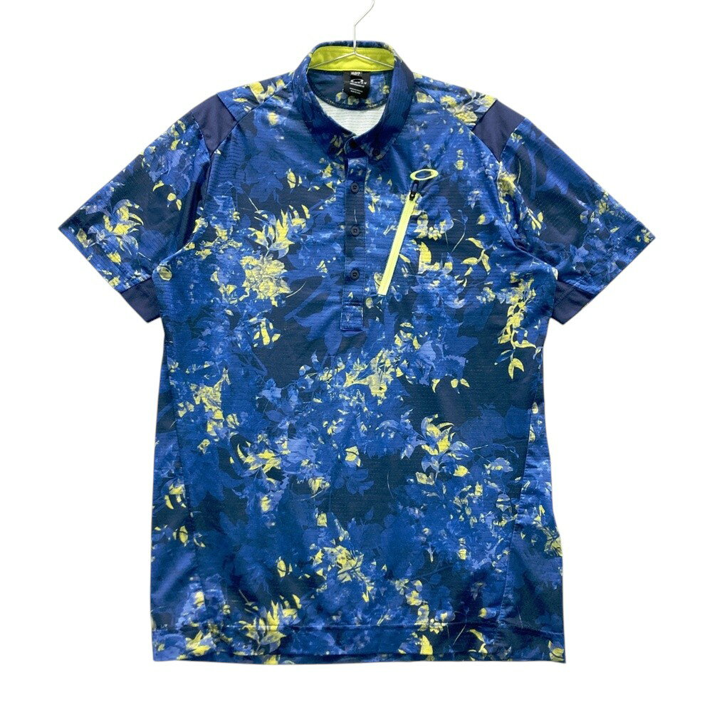 OAKLEY オークリー FOA404488 ボタンダウン 半袖ポロシャツ 花 総柄 ネイビー系 L・・・