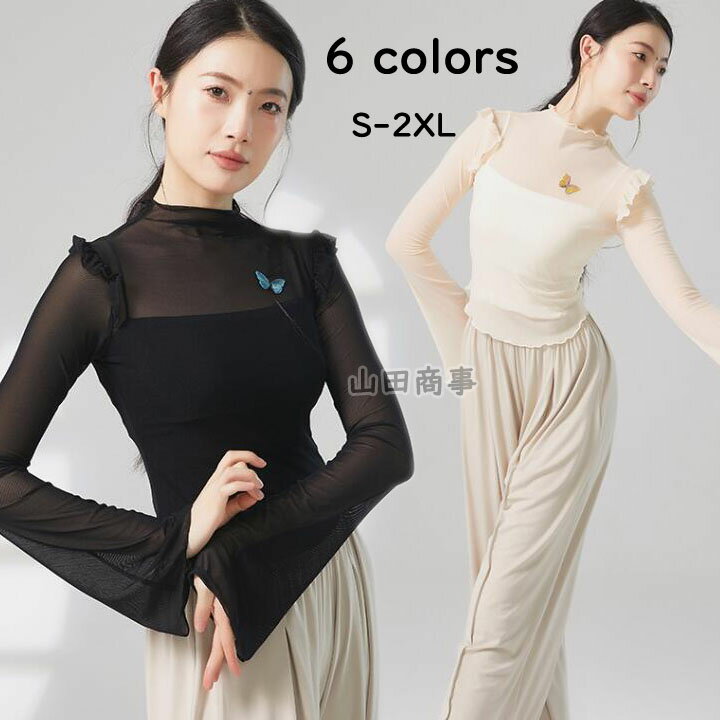 フリル付きトップス ダンス衣裳 長袖 練習用 6色 社交ダンス衣裳 Tシャツ バレエダンス カットソ・・・