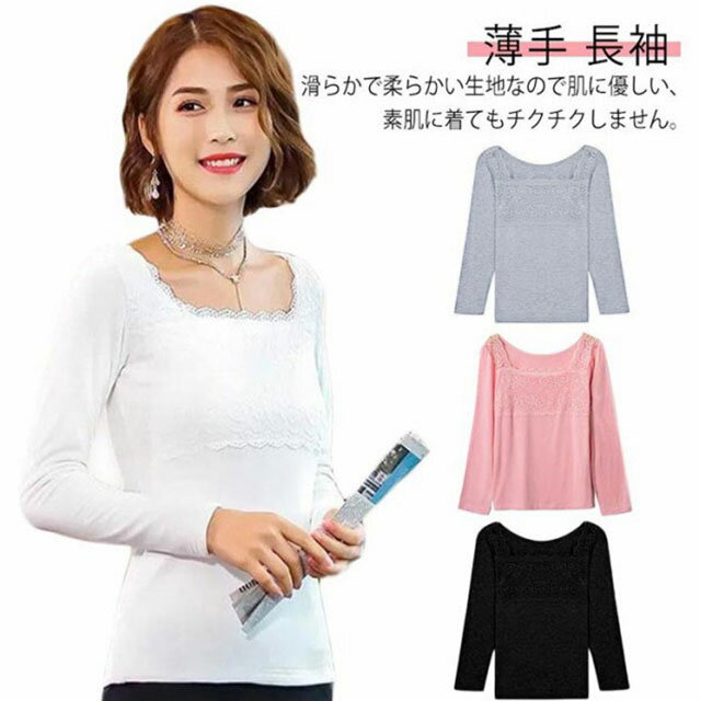 送料無料 クルーネック 花柄レース Vネック インナー 伸縮 薄手 肌着 シンプル ストレッチ レー・・・