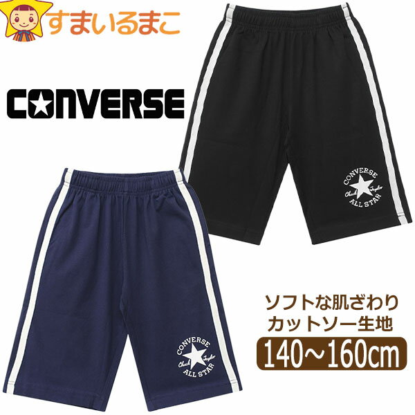 コンバース キッズ ハーフパンツ カットソー素材 綿100% パンツ ロゴ ライン 140cm 15・・・
