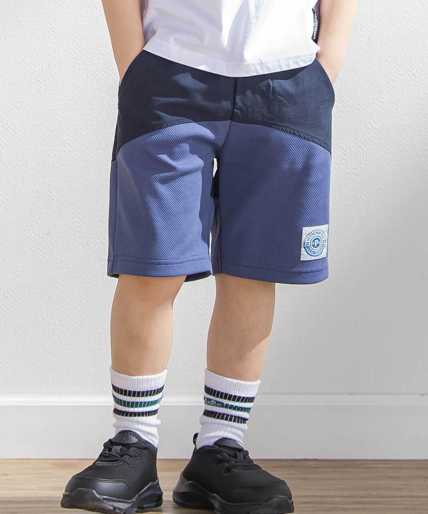 BeBe Petits Pois Vert 斜めカットソー布帛切り替え5分丈パンツ(95~160cm・・・