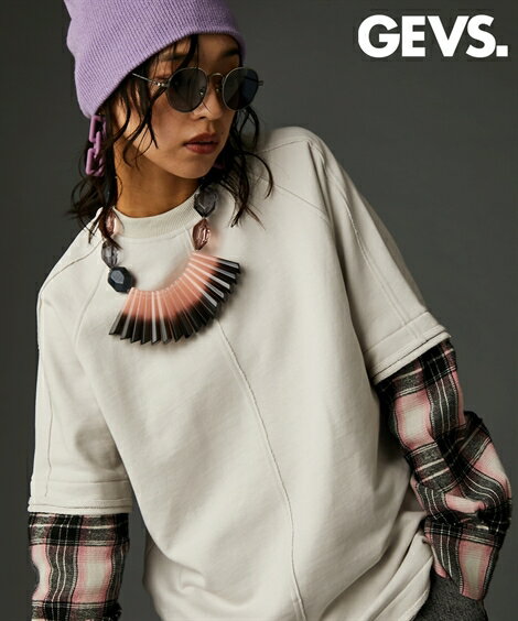 Tシャツ カットソー レディース フェイクレイヤード プルオーバー GEVS. アイボリー/杢グレー・・・
