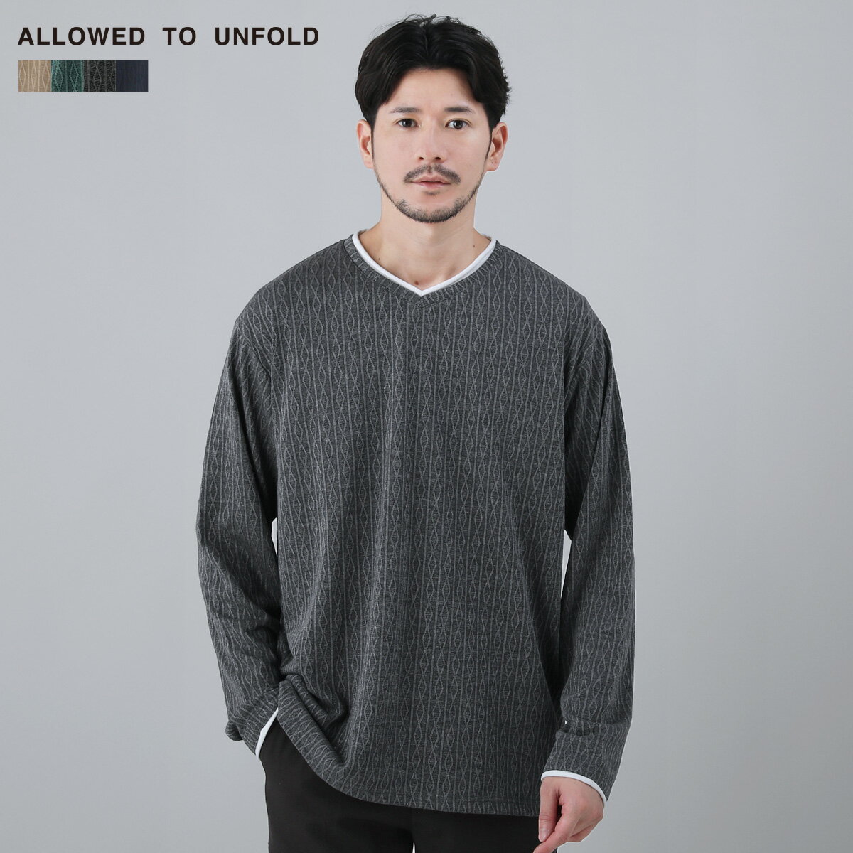 カットソー メンズ 秋 秋服 冬 冬服 ワッフル Vネック ジャガード フェイクレイヤード 長袖杢 ・・・