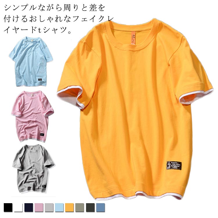Tシャツ クルーネック 無地 メンズ 半袖 フェイクレイヤード カットソー トップス カジュアル t・・・