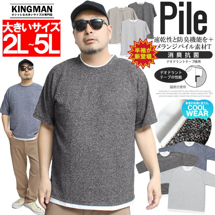 メール便で送料無料 5分袖 Tシャツ メンズ 大きいサイズ メランジ パイル フェイクレイヤード 消・・・