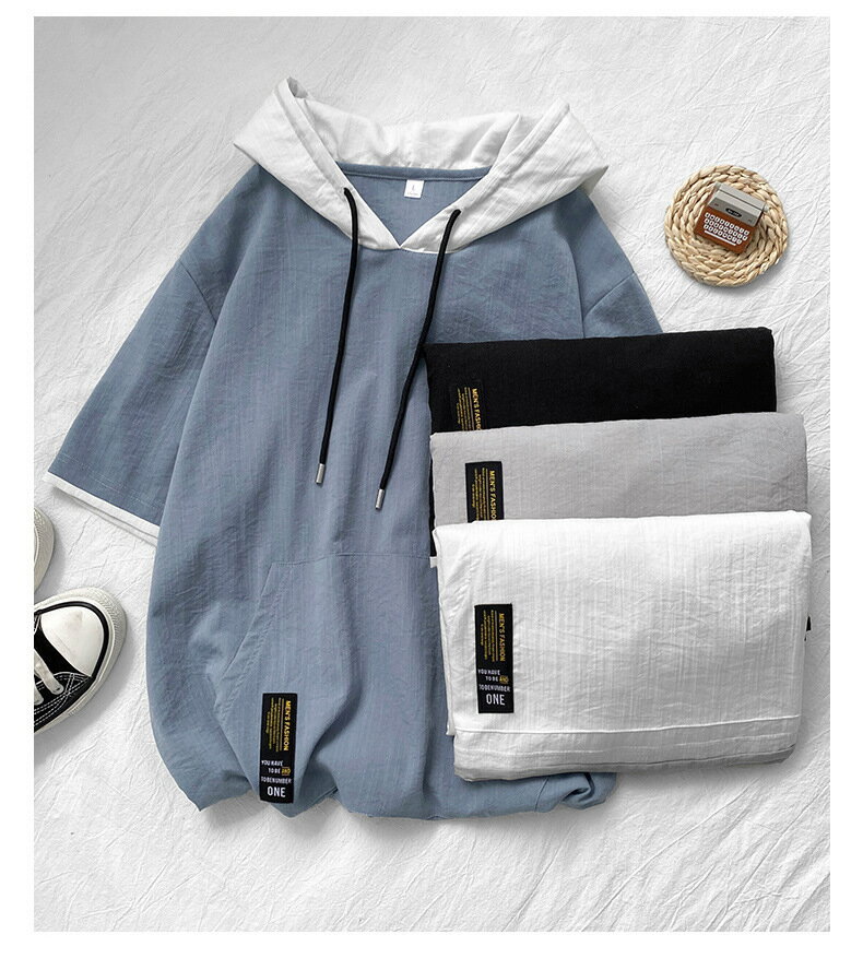 半袖パーカー メンズ 半袖 切り替え フード付き 薄手 フェイクレイヤード トップス おしゃれ カッ・・・