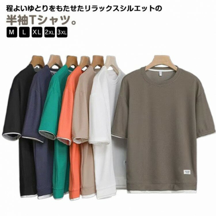 半袖 Tシャツ メンズ tシャツ フェイクレイヤード 韓国 ファッション ビッグシルエット ビッグt・・・
