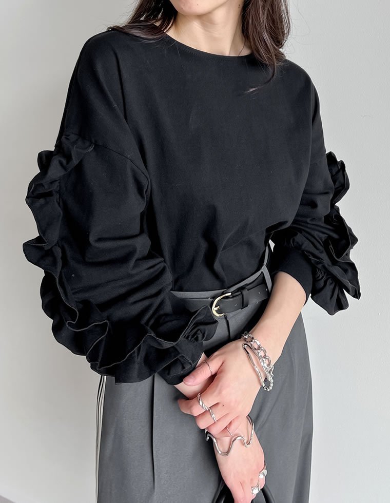 Re:EDIT 袖フリル長袖カットソー リエディ トップス カットソー・Tシャツ ホワイト グレー ・・・