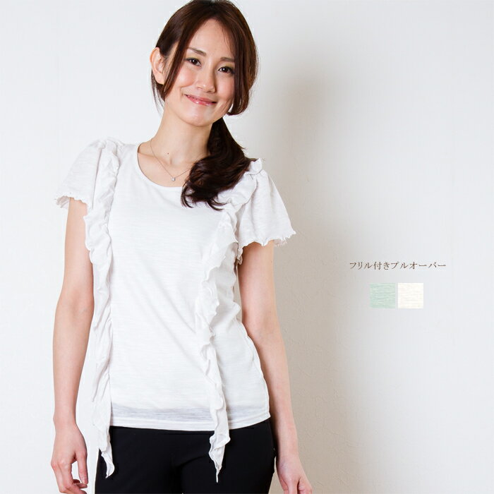 レディース フリル使い プルオーバー 日本製(350007) カットソー Tシャツ 半袖 フリル使い・・・