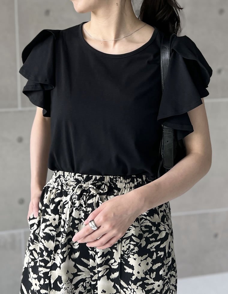 Re:EDIT フリルスリーブ半袖Tシャツ リエディ トップス カットソー・Tシャツ ブラック ホワ・・・