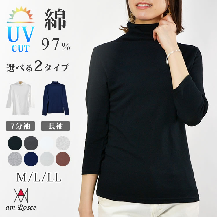 \限定クーポン配布中/UVカット インナー レディース 綿 コットン ボトルネック カットソー トッ・・・
