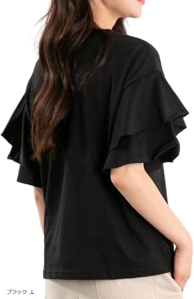 スリーピングシープ 袖フリル 大人可愛い フレアスリーブ コットン カットソー フレア袖 プルオーバ・・・