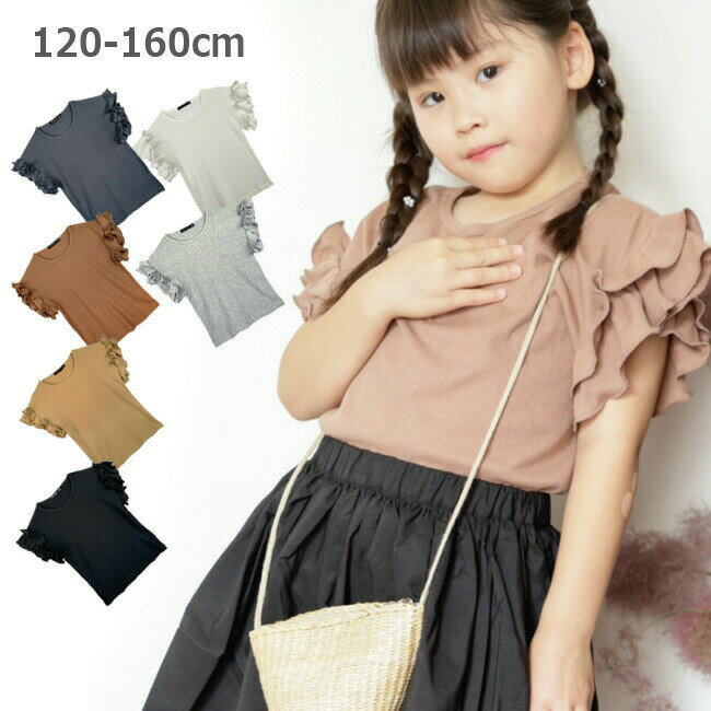 フリル袖 半袖 Tシャツ テレコTシャツ 送料無料 丸襟 クルーネック 120cm 130cm 14・・・