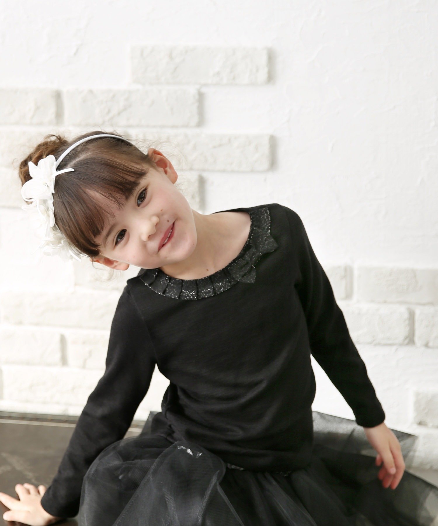 送料無料 リブトップス メロウトップス カットソー 長袖 リブ メロウフリル 子供服 キッズ ジュニ・・・