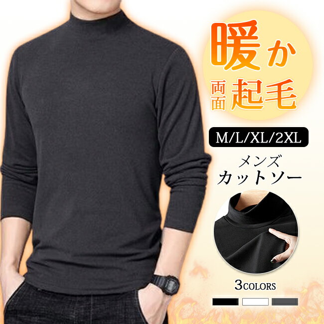 両面起毛 メンズ カットソー Tシャツ 長袖 ロンT 微起毛 タートルネック インナー トップス モ・・・