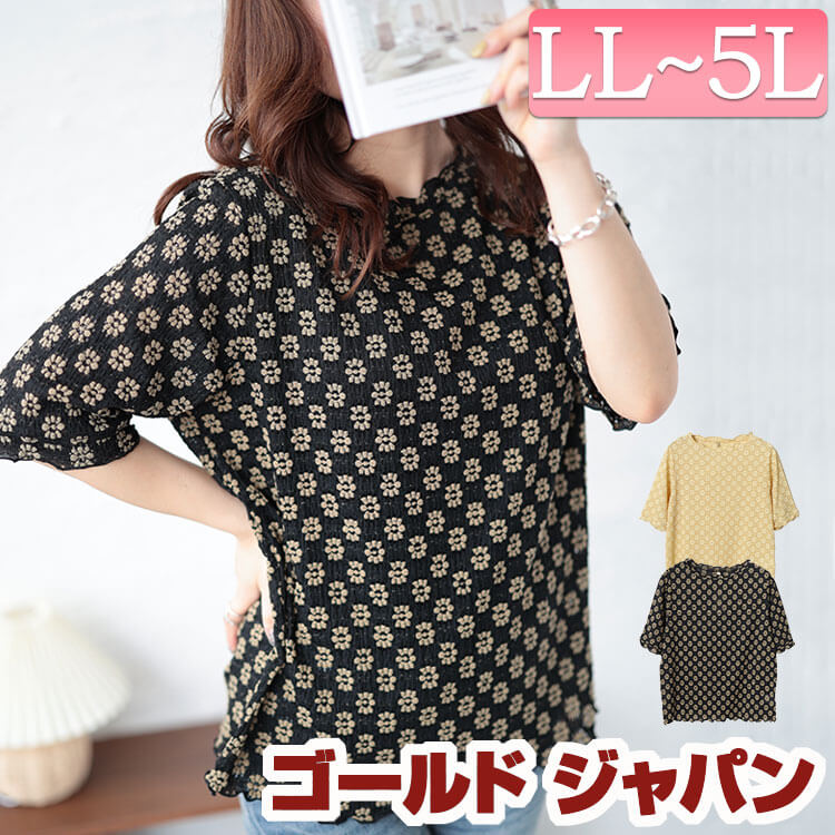 大きいサイズ レディース トップス Tシャツ カットソー フラワージャガードメロウTシャツ 花柄トッ・・・