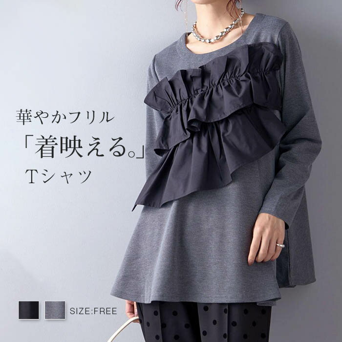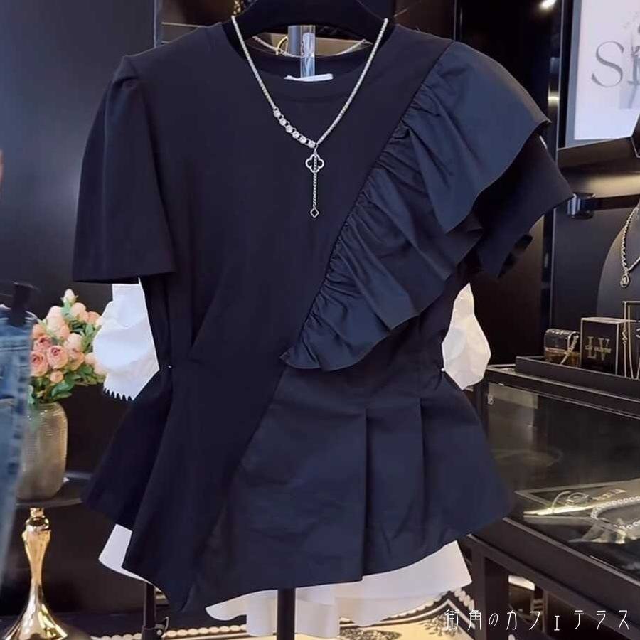 レディース トップス カットソー フリル アシンメトリー シンプル カジュアル ウエストシェイプ ス・・・
