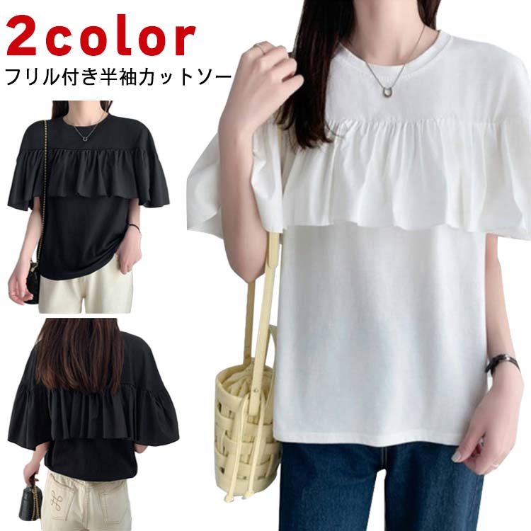 送料無料 Tシャツ 袖フリル レディース ティーシャツ カットソー プルオーバー 半袖 フリル チュ・・・