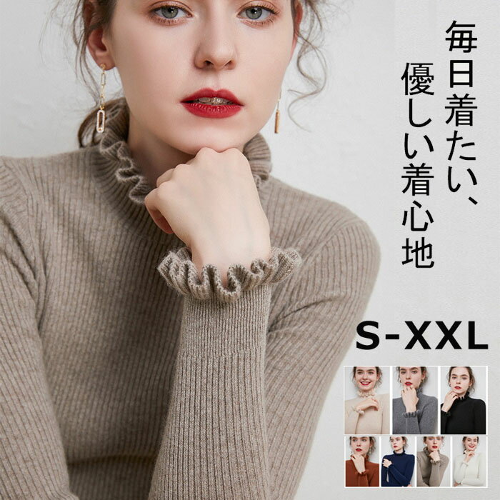 S/M/L プルオーバー 長袖 カットソー トップス シルエット インナー ハイネック 襟 フリル袖・・・