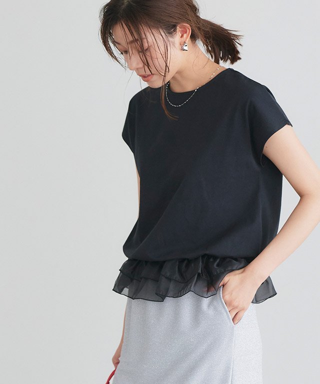 Pierrot 【イージーケア】裾フリルドッキングカットソー ピエロ トップス カットソー・Tシャツ・・・