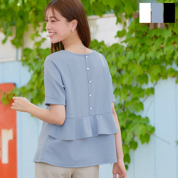 バックフリルカットソー レディース カットソー ティーシャツ Tシャツ トップス フェミニン フリル・・・