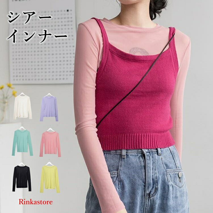 【単品・選べる2枚セット】シアートップス シアー トップス 長袖 半袖 ハイネック レース 涼しい ・・・