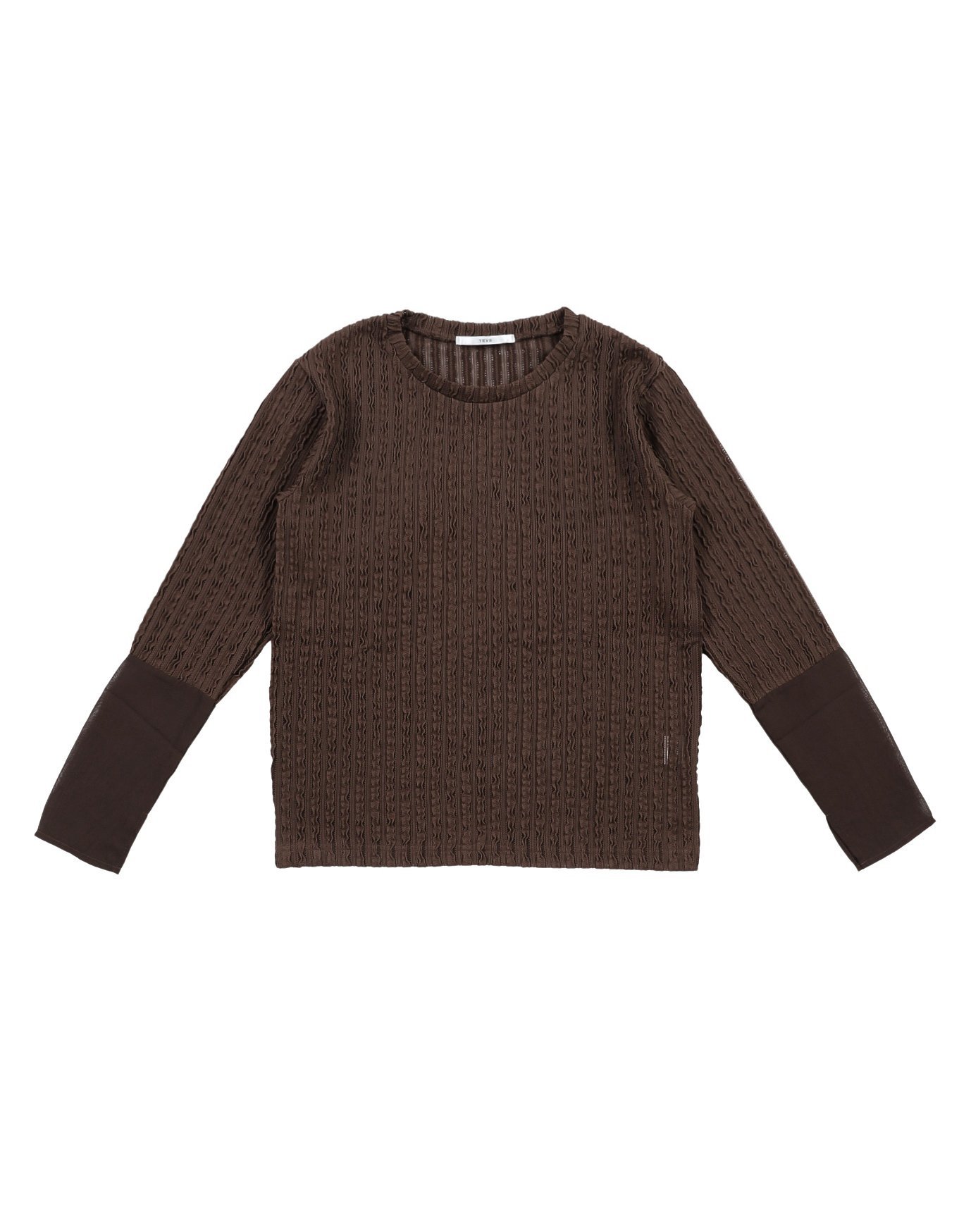 YEVS フリルストライプジャガード袖シアープルオーバー イーブス トップス カットソー・Tシャツ ・・・
