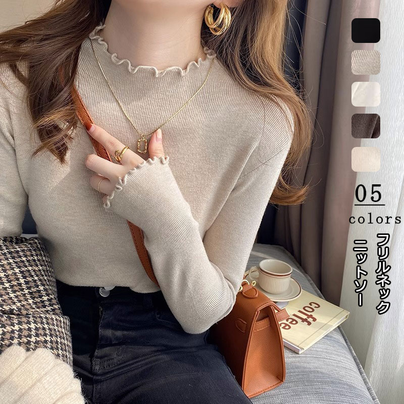 ニットソー インナーニット ハイネック レディース 秋冬 カットソー インナー リブニット 無地 長・・・