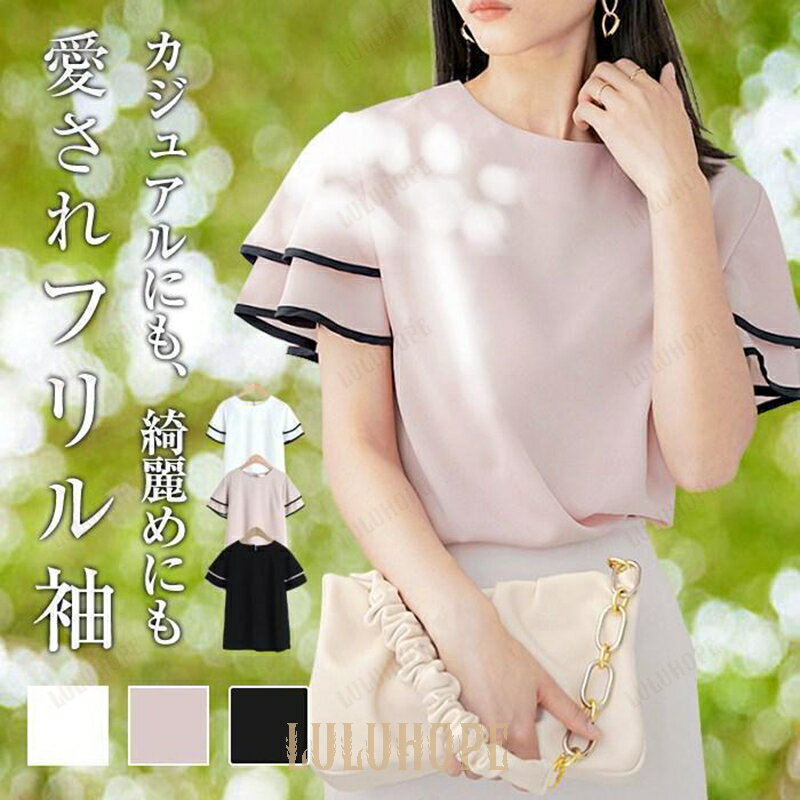 トップス T シャツ カットソー 半袖 フリル袖 レディース 夏 フリル袖Tシャツ レディース T ・・・