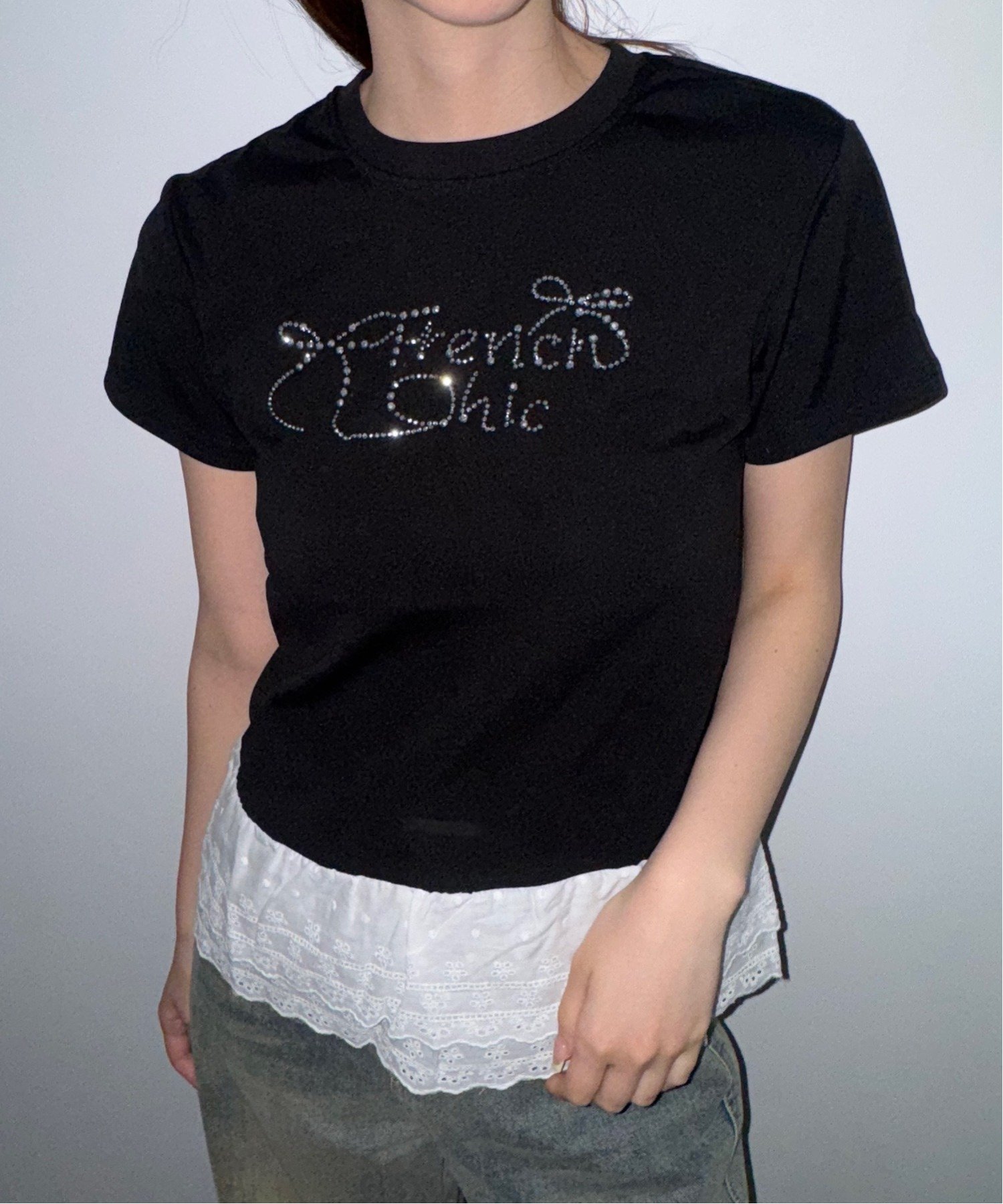 Nia Nia/(W)Nia(ニア)/裾フリル ラインストーン ガーリーTシャツ チェルカ トップス・・・