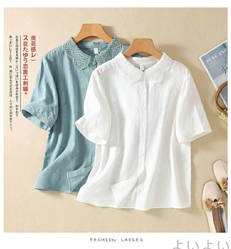 綿ブラウス半袖レディース 綿のブラウス 半袖 ブラウス レディース 半袖 シャツ ブラウス刺?入り ・・・