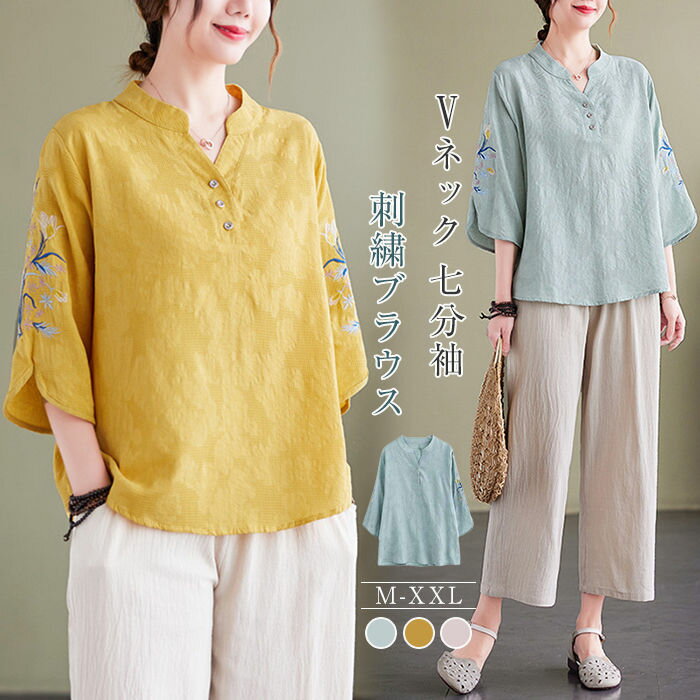 シャツブラウス ブラウス レディース 七分袖 夏 春 トップス カットソー シャツ ゆったり おしゃ・・・
