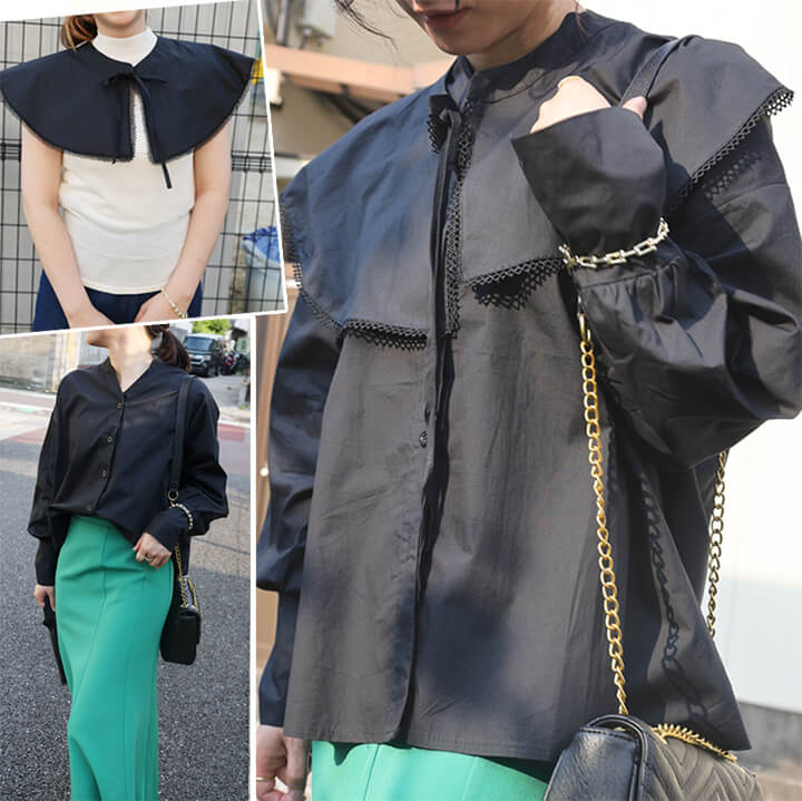 1K【送料無料】付け襟ブラウス レディース シャツ 開襟シャツ カジュアル シャツ ファッション お・・・