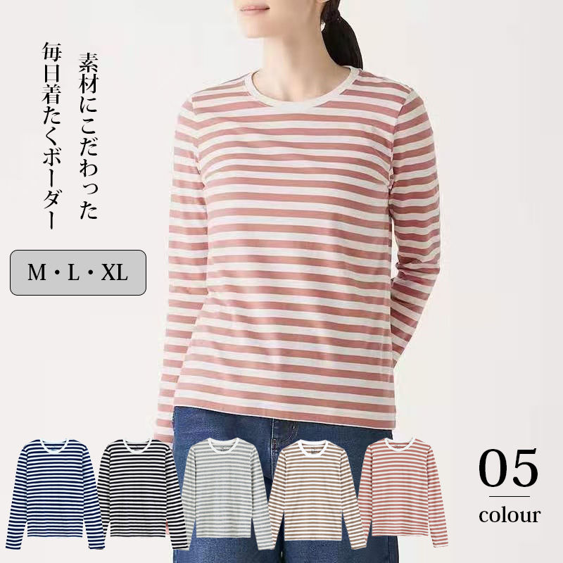 綿100% カットソー コットン レディース 長袖 日本製 ボーダーTシャツ/ 着後レビューでクーポ・・・
