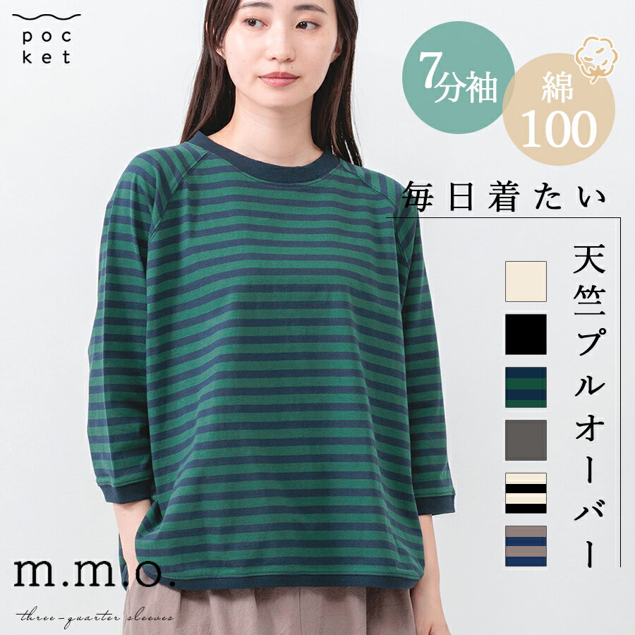 カットソー 七分袖 レディース 秋冬 冬 ゆったり ボーダー Tシャツ トップス 秋 丈短め おしゃ・・・