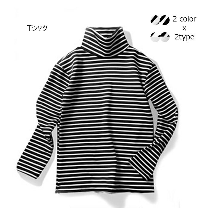 【送料無料】Tシャツ レディース 長袖 カットソー ハイネック ボーダー柄 シンプル カジュアル 防・・・
