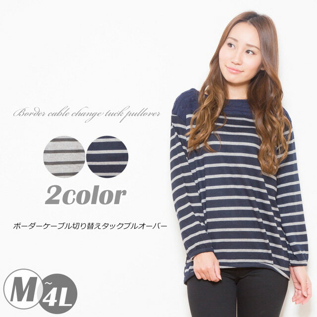【送料無料】レディース カットソー 長袖 ケーブル切替 ボーダー柄 プルオーバー ゆったりシルエット・・・