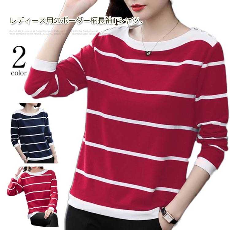 送料無料 Tシャツ 長袖 レディース トップス ボーダー柄 カットソー 長袖Tシャツ ゆったり ボー・・・