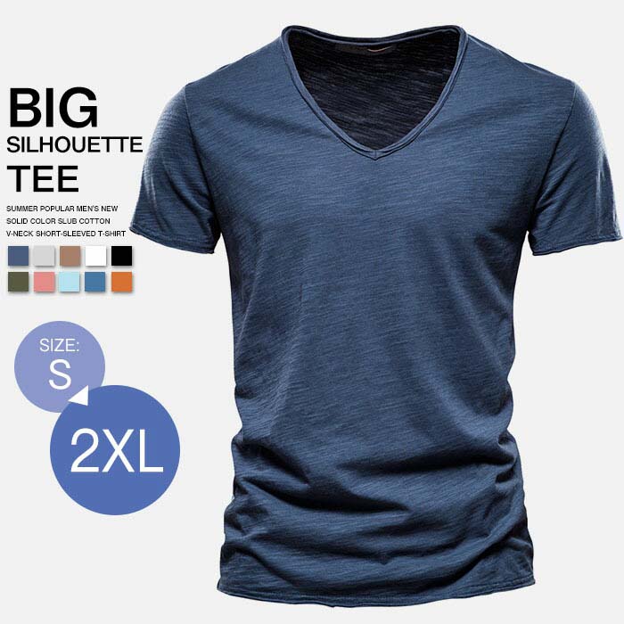 S-2XL Tシャツ メンズ 半袖シャツ 春 夏 カジュアル 半袖 Vネック シャツ 薄手 無地 カ・・・