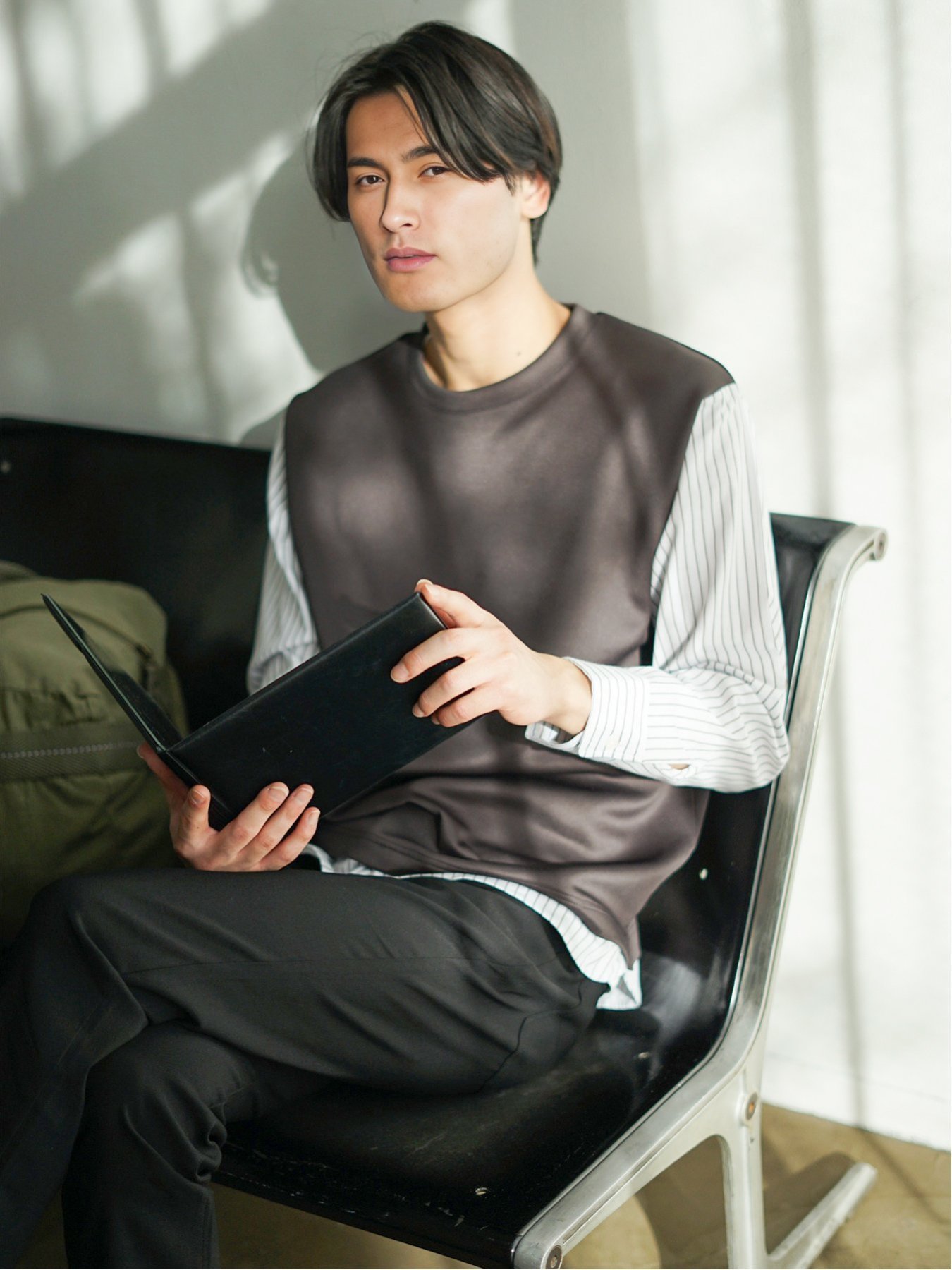 【SALE/50%OFF】TAKA-Q さまになる 布帛切替 クルーネック長袖Tシャツ メンズ アウ・・・