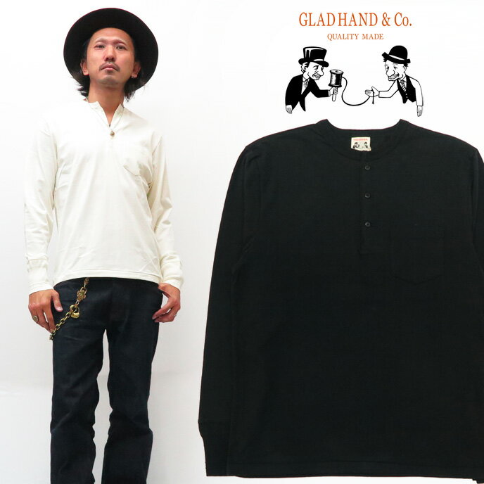 GLAD HAND グラッドハンド 長袖 Tシャツ ヘンリーネック 胸ポケット 天竺生地 パックTe・・・