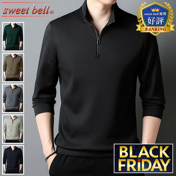 【ポイント超UP】ポロシャツ メンズ 長袖 高品質 春 秋 冬 ハーフジップ おしゃれ ゴルフ ブラ・・・