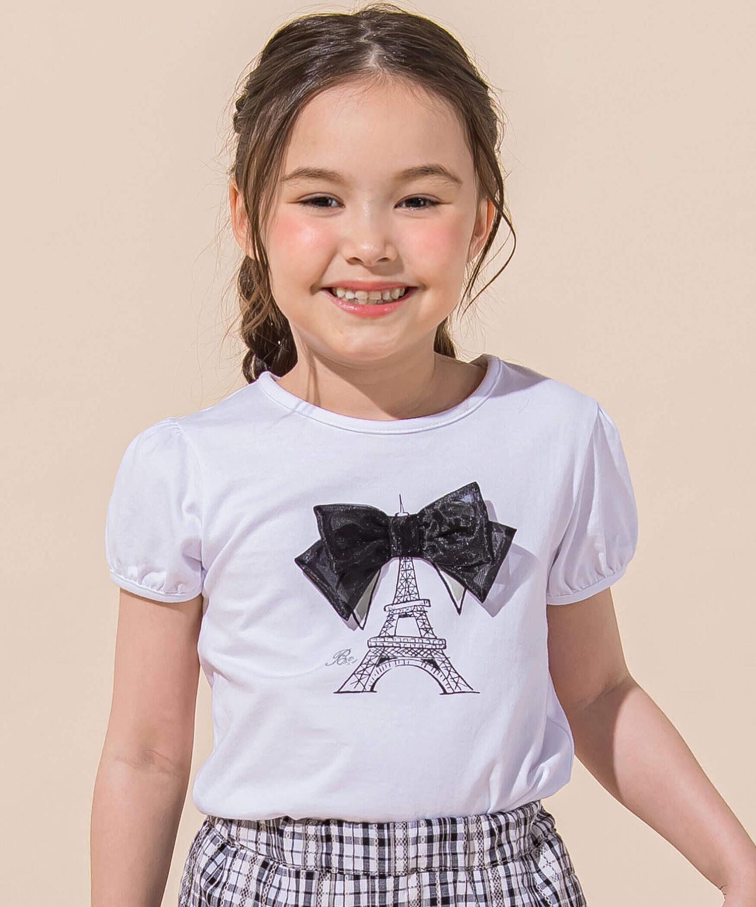 【SALE/60%OFF】BeBe エッフェル塔プリントリボン天竺パフスリーブTシャツ(90~150・・・