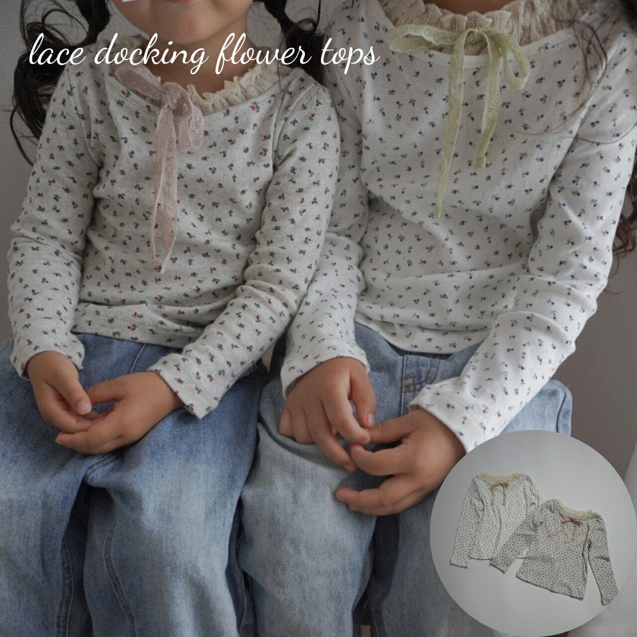 \10%OFFセール/ キッズ 女の子 トップス カットソー 長袖 lace docking flo・・・